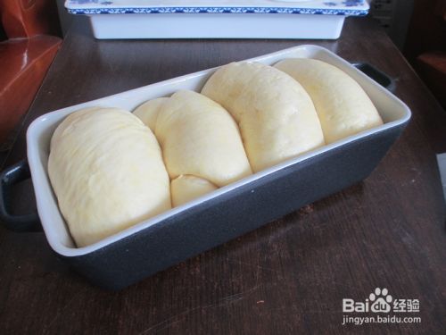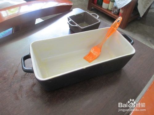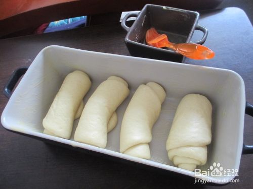 烤盘涂油。卷好的面团放入烤盘等待发酵。