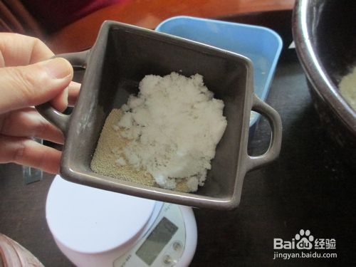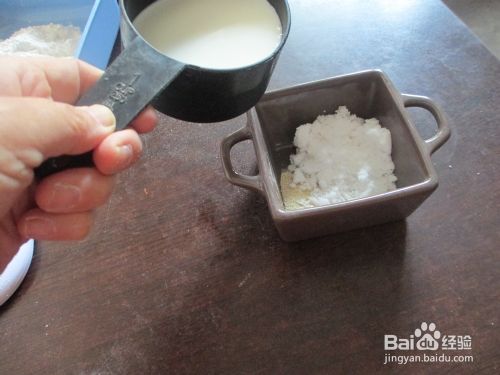 把白糖和酵母放在一个碗里,加入牛奶拌匀