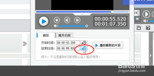 视频载入完毕后,看爱剪辑操作界面的右边,点击导出视频。如果需要合并的不是并不是视频主体,而是视频中的某一段,需要先进行裁剪。