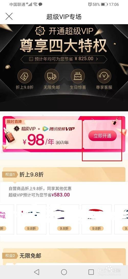 第三步进去超级vip之后,点击立即开通,如下图所示: