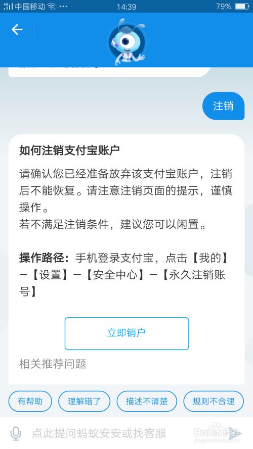 最后点开我的客服往下拉会看到一个在线服务在点击它会跳到一个聊天框就打注销两个字发送出去他就会跳出操作步骤了!