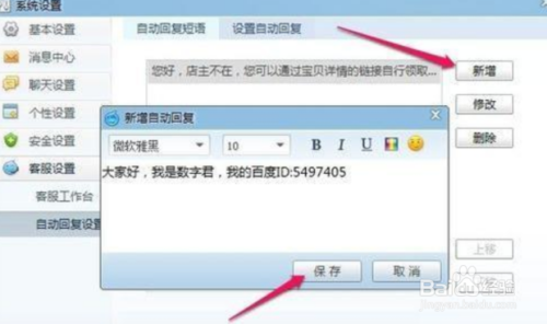 如果想添加新的自动回复内容的话,点击“自动回复短语”,然后再点击新增,最后确定一下就可以了。