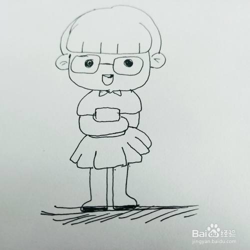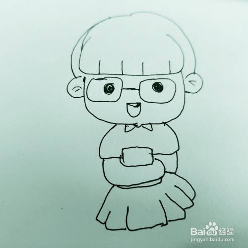 第四步,我们来画卡通女孩的胳膊和裙子。