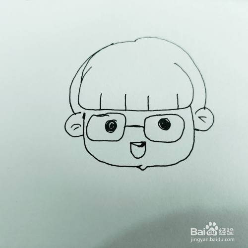 第一步,我们来画卡通女孩的头部和脸部轮廓。