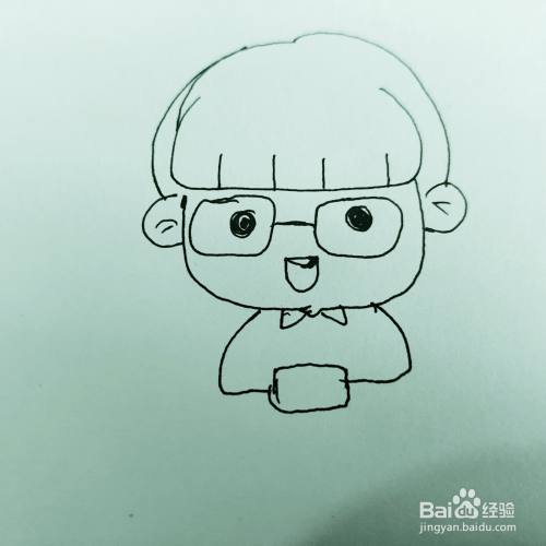 第三步,我们来画卡通女孩的上半身身体轮廓,以及手中拿着的书本。