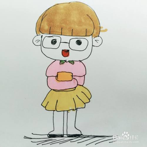 第六步,我们来拿出画笔为卡通女孩涂上颜色。
