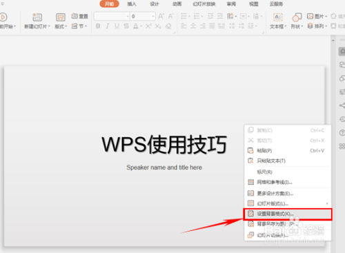 首先我们在幻灯片处单击右键,选择【设置背景格式】。