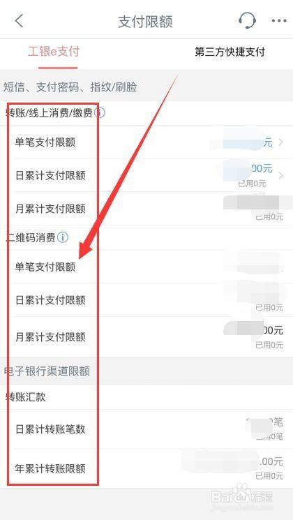 如果需要查询第三方支付限额,点击“第三方快捷支付”。如图: