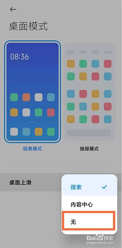 点击【桌面上滑】。如图所示