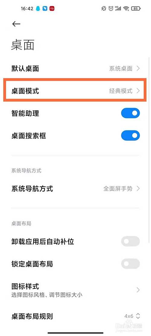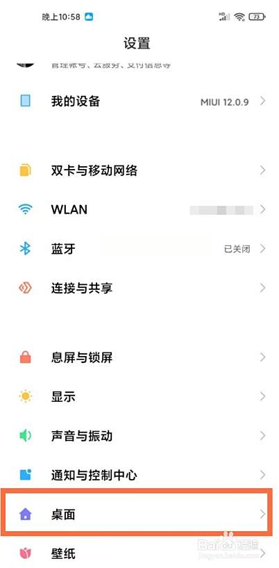 在手机设置菜单中点击【桌面】。