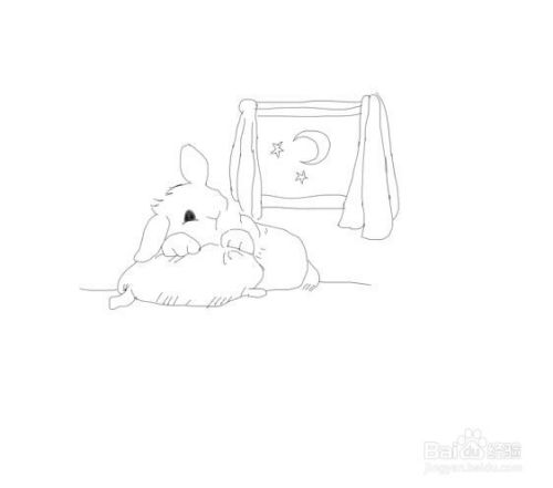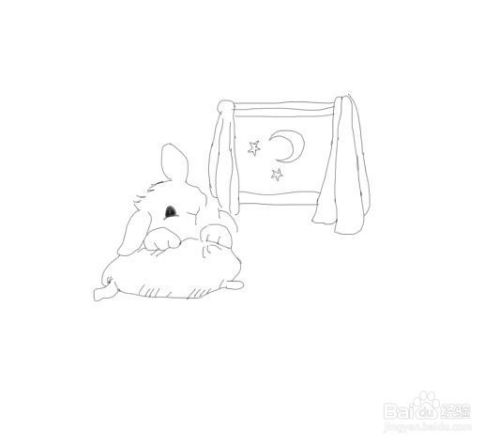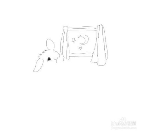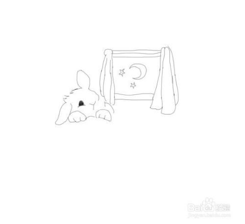 最后再画出小兔子的身体及脚部,然后再画出床,这样睡觉的小兔子就画好了,如图所示: