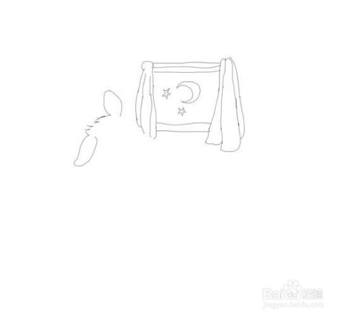 再在窗户的外面我们再画出月亮和星星,如图所示: