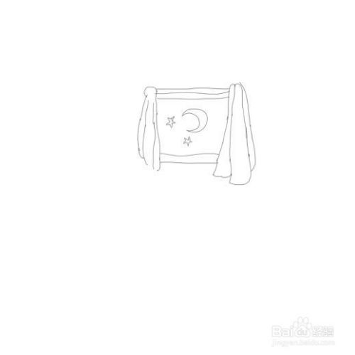 我们先画出一个窗户,并在窗户上画出窗帘,如图所示: