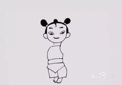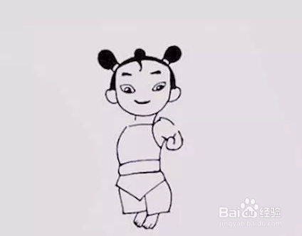 第十二步:继续往下将哪吒的小脚丫画出来,而且两只小脚丫是并拢的
