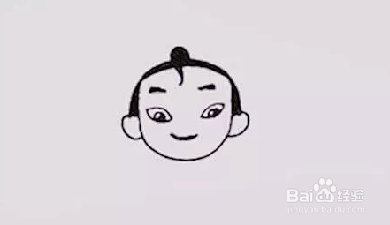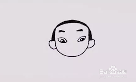 第五步:开始画哪吒的眉毛,它的眉毛比较短,因此各位在画的时候,也要注意线条画得短一些,但是要稍微粗一点。