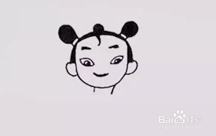第八步:画出哪吒头顶两侧的辫子,这是它的个性,也是象征。