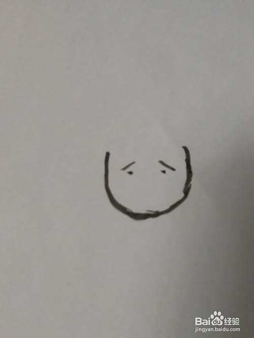 首先我们在画纸上画出一个椭圆,这是樵夫的脸,上面画上两个眼睛和两个眉毛。