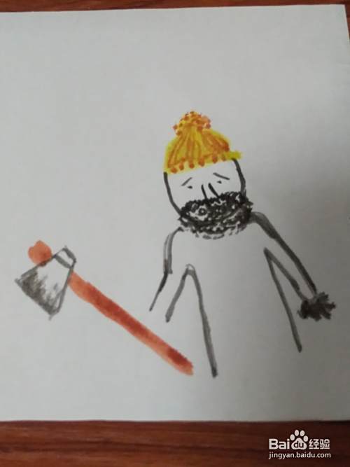 一只手的地方我们画出一把斧头,棕色作为斧头的柄。