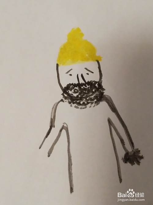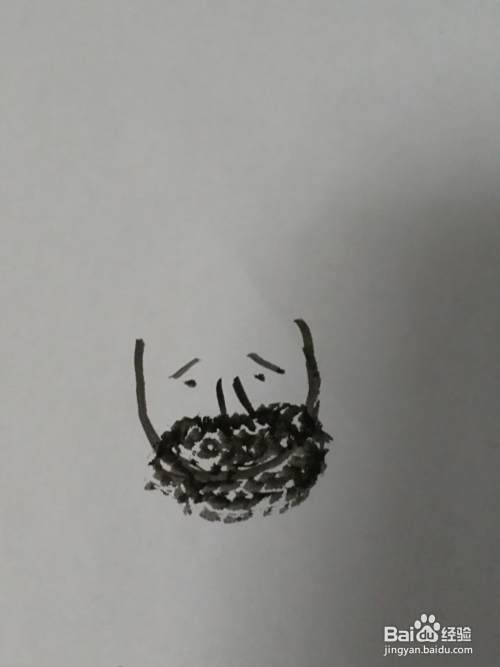 在两个眼睛的中间,我们画出两个鼻子,下面画出一堆他大大的胡子。