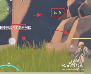 然后领取”凯瑟琳”委托,找到崖壁上的“巨石”,如下图所示。