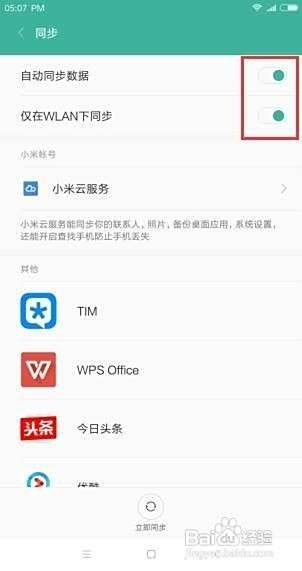 还需要开启自动同步功能,在"设置”-“同步”界面中,开启“自动同步数据”和“仅在WLAN下同步”两个选项即可。
