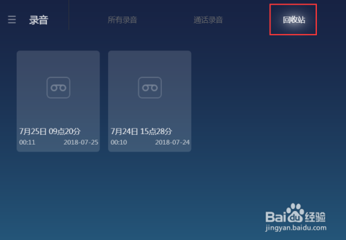 打开录音文件页面之后,点击页面顶部“回收站”菜单;