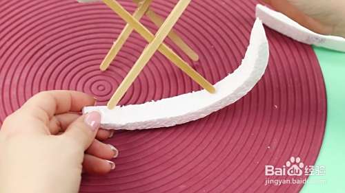 然后再把弯曲的塑料弧形和木棒粘在一起。