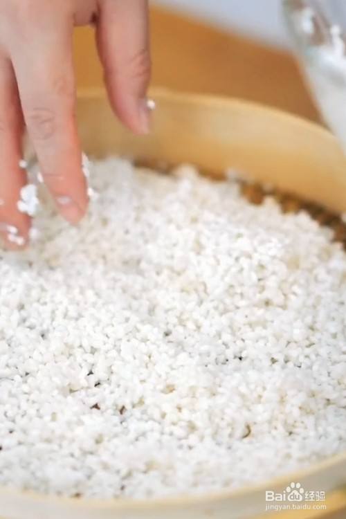 把糯米均匀铺开在蒸笼上,蒸20分钟