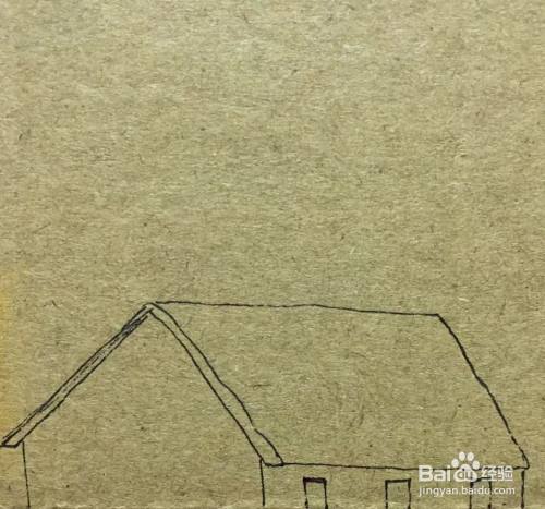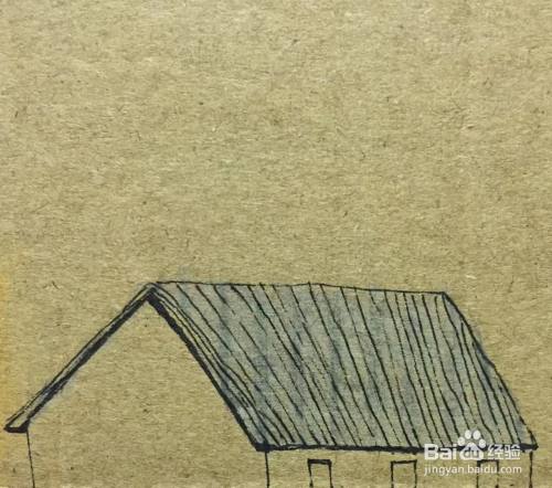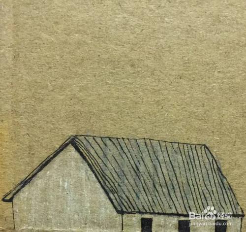 首先在纸上,用黑色勾线笔画出房子的屋顶,我们在屋顶上用灰色彩铅画笔为其上色。