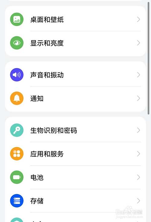 进入“设置”页面,在页面中选择“桌面和壁纸”选项。