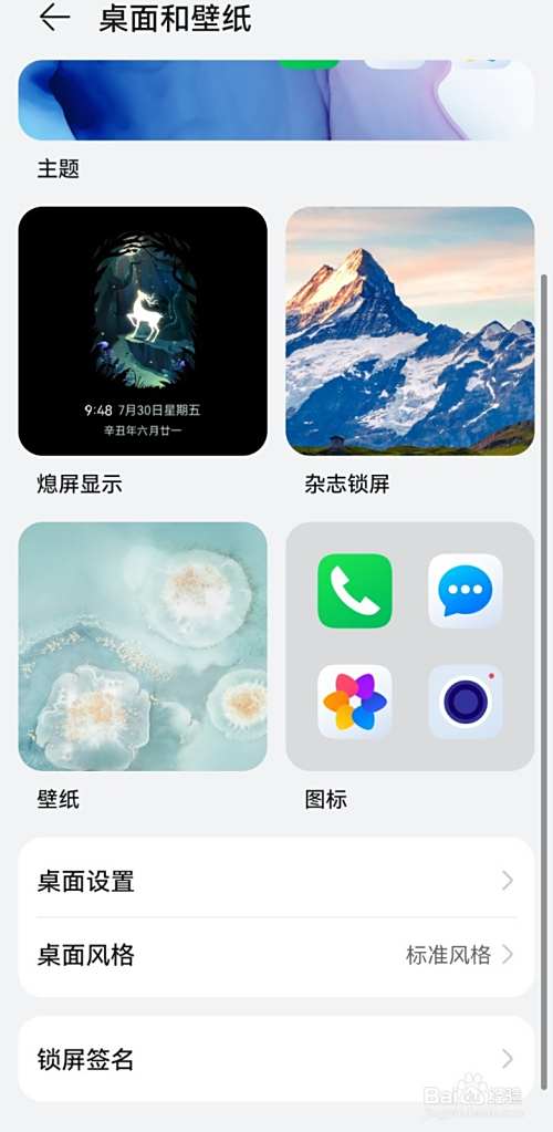 在设置页面中,进入“桌面和壁纸”界面选择一张壁纸,点击“设为锁屏”即可完成设置。
