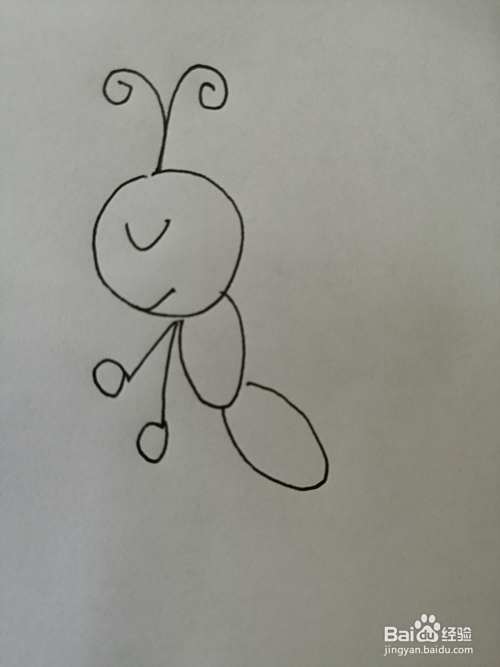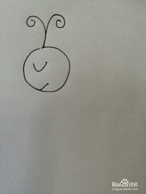 第一步,我们先画出漂亮的小蝴蝶的头,注意头顶上弯弯触须的画法。