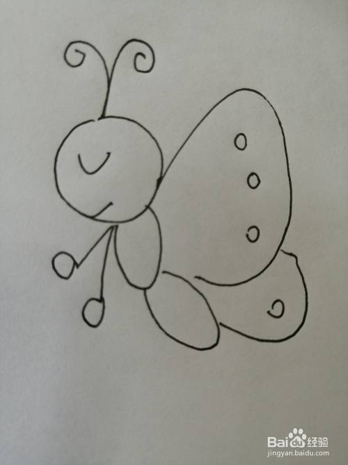 第三步,然后在小蝴蝶的眼睛下面画出一条短弧线的嘴巴,画法也比较简单。