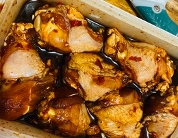 码入拌匀的小鸡腿,把多余的酱汁浇在鸡腿上,煮到差不多一半的时间,最好开盖给鸡腿翻个面,这样入味更均匀