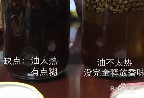 待黄油锅的花椒油凉,便可倒入玻璃瓶保存