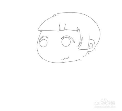 根据眼睛的大小和嘴巴的位置,画出人物的头部轮廓;用曲线画出头发的轮廓;如图所示。