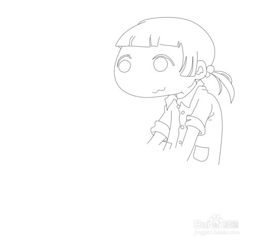 接着头部画出人物的上半身,包括挽起的袖子和穿着的衣服;如图所示。