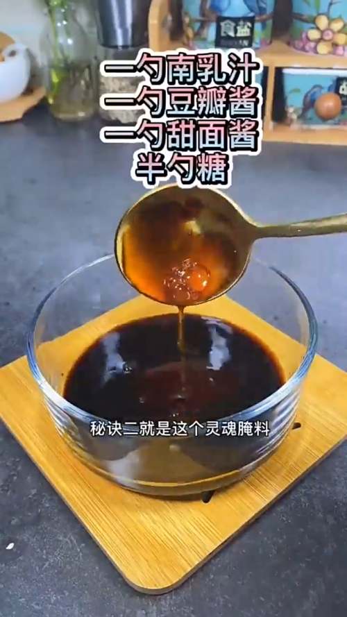 3加入豆腐乳,豆瓣酱,甜面酱,糖。