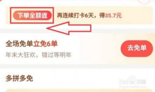打开拼多多点击多多赚大钱选项,进入后选择下单全额返,点击签到选项后签到够天数点击领取奖励即可。