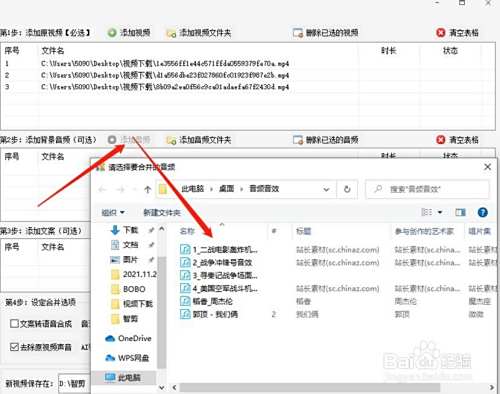 3、该功能支持添加视频、音频以及文案,我们这里就需要将视频与音频导入,这里可以同时导入多段视频,直接点击添加视频就可以将视频添加进去。