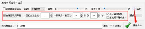 5、最后我们设置一下视频参数,先将视频原声去除的选项勾选上,有需要将视频内容自由合并的我们就不勾选随机合并以及分解原视频的选项,想要保留原视频内容的我们就将将该选项勾选上。
