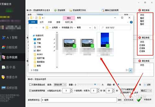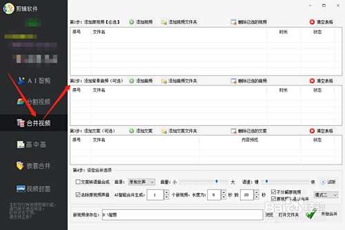 2、下面我们一起来操作一下,首先打开软件,该软件支持视频混剪,合并、分割等多个功能,很适合从事自媒体的朋友,我们进入合并视频的功能。