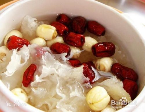 红枣银耳莲子汤,莲子提前一晚浸泡,泡好后剥开除去里面的莲心,枸杞泡1分钟后洗净备用,银耳泡15分钟,待发后,去粗蒂撕成小块,锅内加入清水,把莲子和红枣放进去煮1个小时后,加入银耳炖半个小时,加冰糖再炖半个小时,汤比较粘稠时,加入枸杞炖5分钟即可。