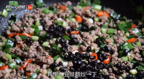 再倒入豆豉翻炒一下。
