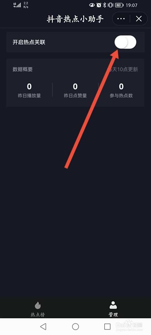 进入手机的抖音软件,可在热点小助手中,通过点击进入和点击管理,来开启热点关联功能即可。
