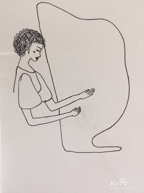 用笔画出女子的身体轮廓,我们画出女子的服装,在其袖口画出手臂。在女子手臂内侧画出竖琴。