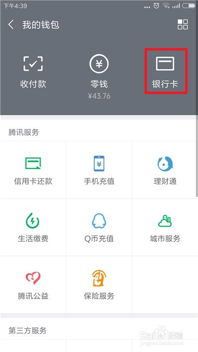 在钱包界面中找到右上角的【银行卡】选项并点击。