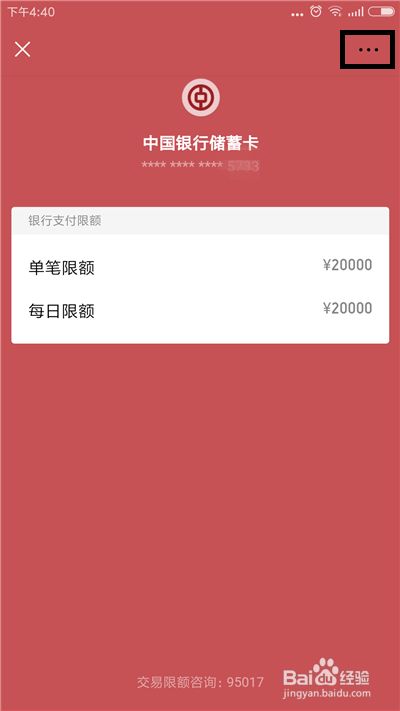 接下来的界面可以看到这张银行卡的相关信息,点击右上角的【...】图标按钮。