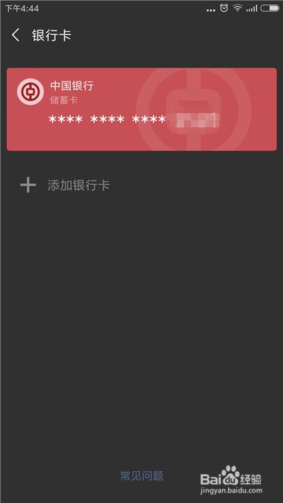 在银行卡界面中可以看到我们绑定的银行卡,点击想要解除绑定的银行卡。