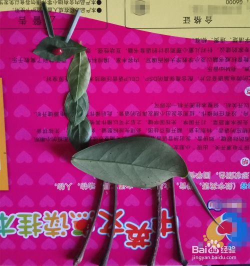最后拿了四根叶柄当长颈鹿的脚,长颈鹿完成,如图所示。